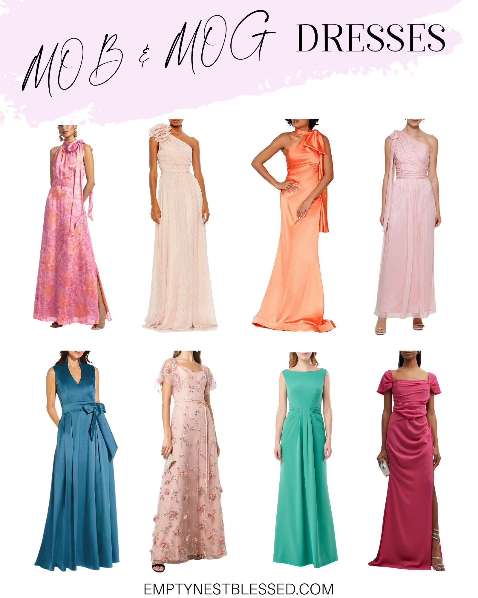 I’m not looking for anything low-cut or with a high slit! Not only would I look ridiculous, but my family would be mortified! ???? Weirdly, I saw lots of both of those as I browsed online! I also saw a lot of darker colors, which don’t seem appropriate for our outdoor summer wedding.